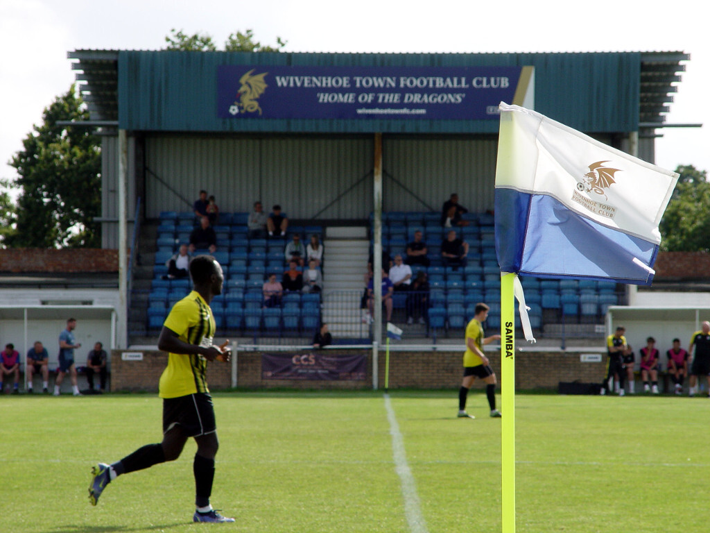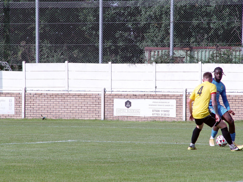 Wivenhoe played direct down the centre of the pitch to try and get back into the game. The No.10 was all that stood between them and the goal. Easier said than done, fellas.
