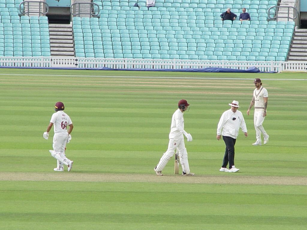 The highlight of the first session was an amazing catch by Ben Foakes. Jamie Overton spilled the ball in slips; Foakes picked up the pieces.