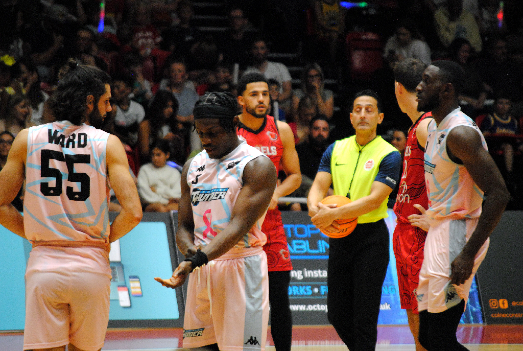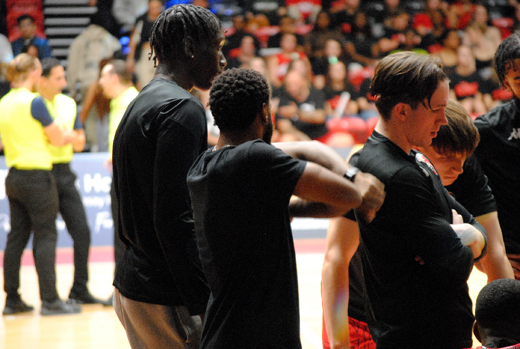 The marketing push from the Rebels worked. Both sides of the Sports Arena were opened up. There was a crowd over 1,000 – not bad at all for a Div 1 match.